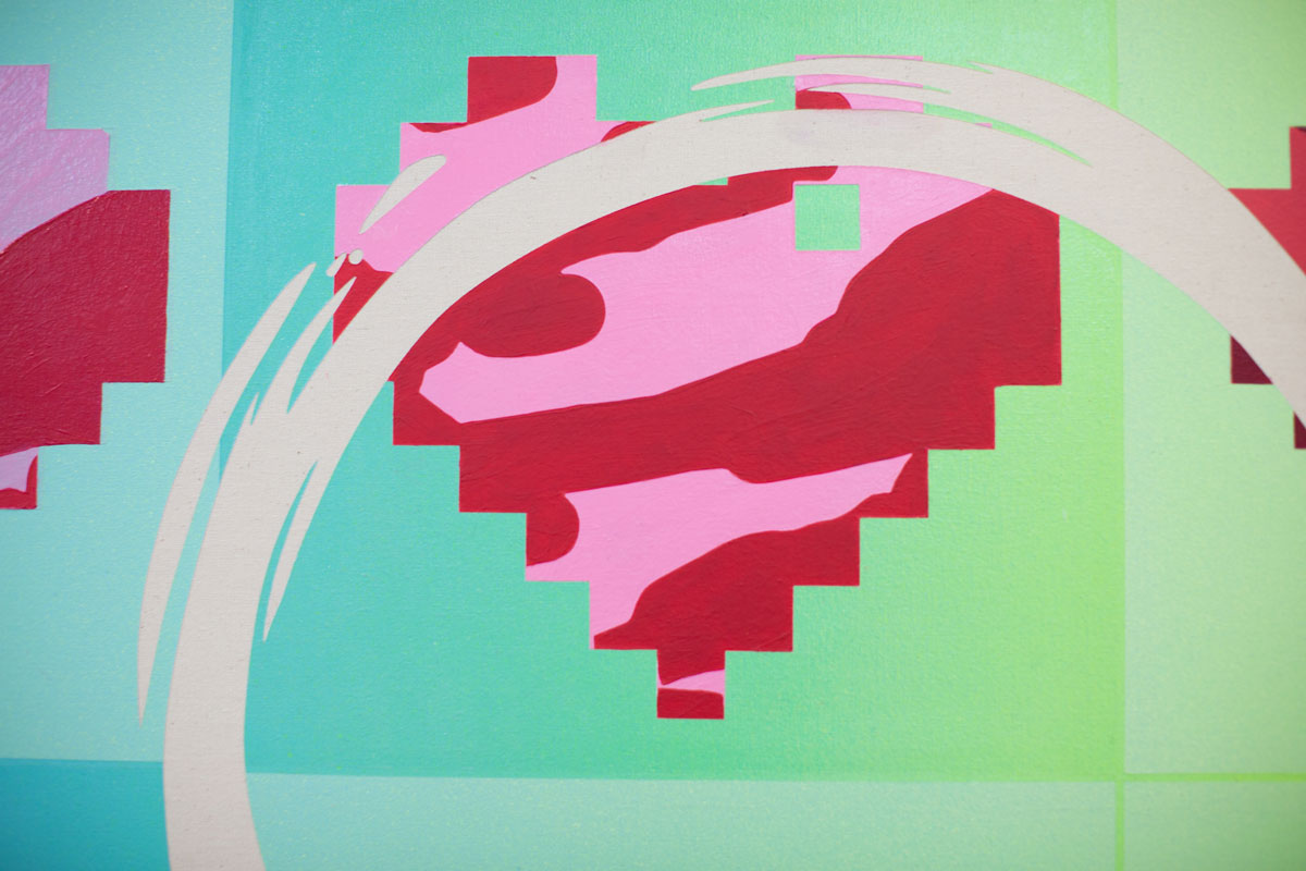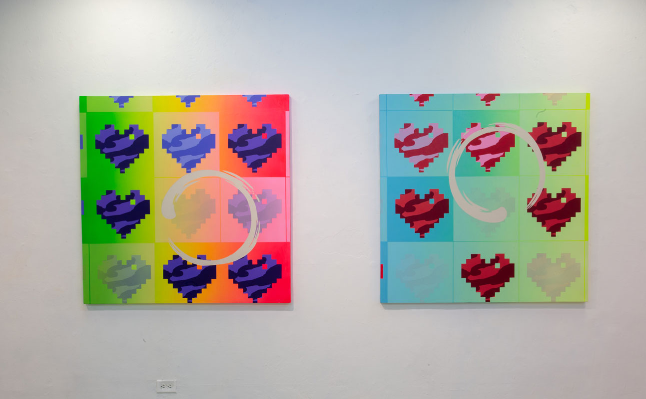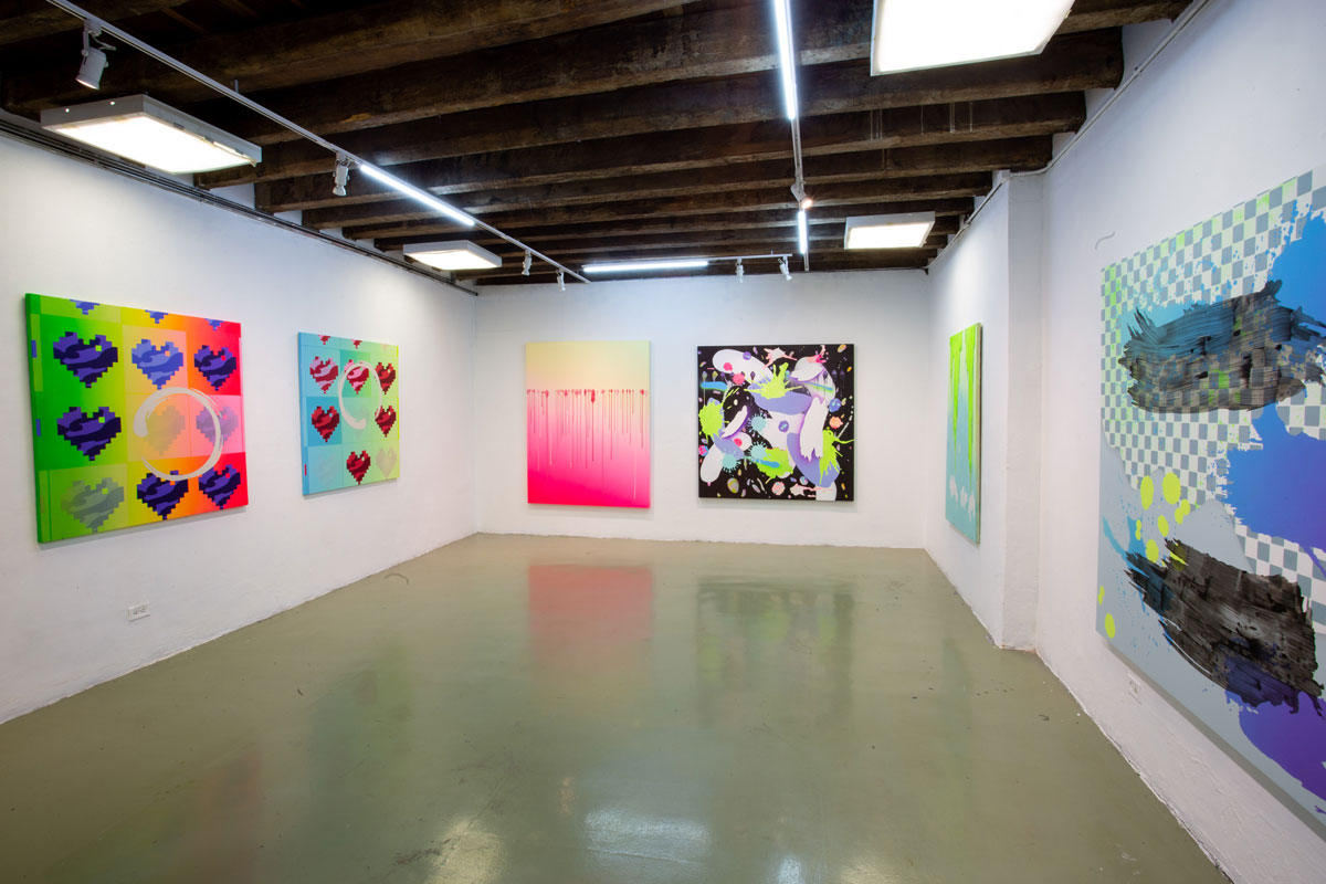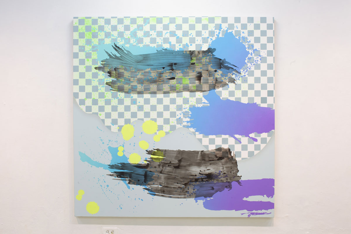 Ctrl+P gira en torno al diálogo y las relaciones inesperadas que se establecen entre los procesos pictóricos ocurridos en el lienzo y los procesos pictóricos ocurridos al operar programas de creación y edición para imagen digital. El diálogo entre el lienzo y la pantalla no es un diálogo confrontativo o competitivo, más bien funciona como una relación simbiótica, en la que organismos de diferentes especies se benefician mutuamente. En la conformación de la serie de pinturas que componen este proyecto, se acude a la fotografía para pasar lo sucedido en lo matérico a lo digital, se acude al software para aplicar efectos, distorsionar la imagen y proponer múltiples bocetos que después pasan de nuevo a lo matérico y a veces de nuevo a lo digital; es un proceso mutable y maleable que al final propone un sólo resultado estático: el objeto-pintura. Cuando se activa este comando en el computador —Ctrl+P, el comando para imprimir—, se está pasando de lo mutable, dinámico y fluyente de lo digital, al plano estático de la imagen impresa; en este caso Ctrl+P no sólo se refiere al control print, también se propone como control paint o control P de pintura y también como control pentimento.