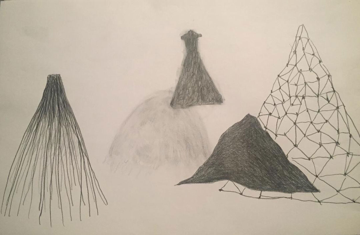 Mi propuesta es una elaboración plástica a partir de mis apreciaciones sobre la asociación formal y simbólica entre la montaña y la imagen de la virgen.