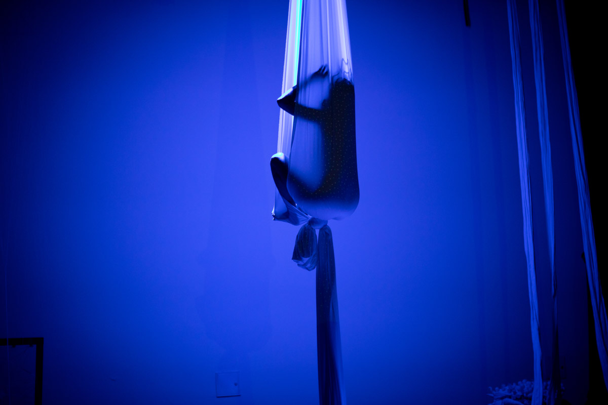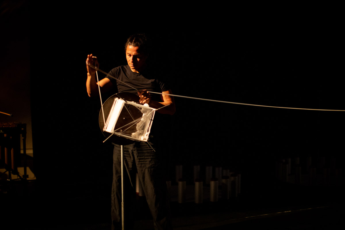 En el tercer escenario se abre un espacio a la presentación del gesto y el performance a través de un dispositivo “dispuesto”, mecanismo en el que se desarrollan determinadas acciones integradas por diferentes medios audiovisuales como proyección de video, sonido e instalación de objetos. De esta manera el dispositivo ofrece un conjunto de objetos agenciados y articulados en el espacio y tiempo. En este contexto, el performance privilegia nuevas relaciones con el público, desde la interacción, es decir por la acción de afectar y ser afectado.