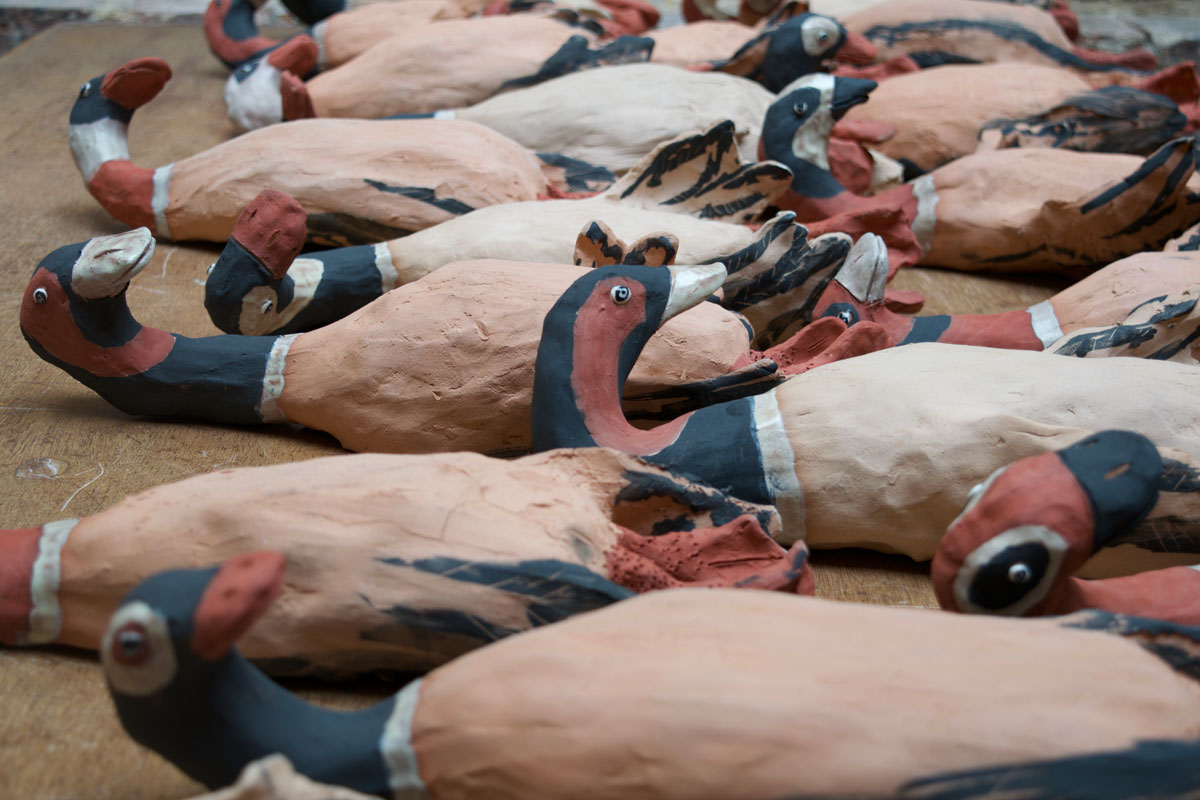 Sobre cacería es un proyecto escultórico que toma como eje de investigación la caza de animales salvajes y su relación intermitente con el arte. Más allá de los dilemas éticos que la práctica despierta en pleno siglo veintiuno, el proyecto toma como objeto de estudio un archivo de objetos (como fotografías, armas, taxidermias, entre otros) producto de las cacerías de patos que realizaba mi abuelo paterno en la Sabana de Bogotá entre las décadas de 1930 a 1960. Ciertamente, revisar estas fotografías, volver a sostener los rifles y mirar nuevamente a estos patos disecados abre una dimensión afectiva a la investigación y creación plástica: el problema de la memoria y la construcción de la identidad a partir de los objetos. Encontrarles una dirección, un sentido propio, ha sido toda una hazaña, pero como dice el filósofo español José Ortega y Gasset, “toda la gracia de la cacería está en que sea siempre problemática”, y tanto esta, como el arte, han estado rodeados de paradojas y contradicciones de las que este proyecto se nutre, mientras reflexiona sobre la relación del ser humano con los animales, la muerte y el ritual.