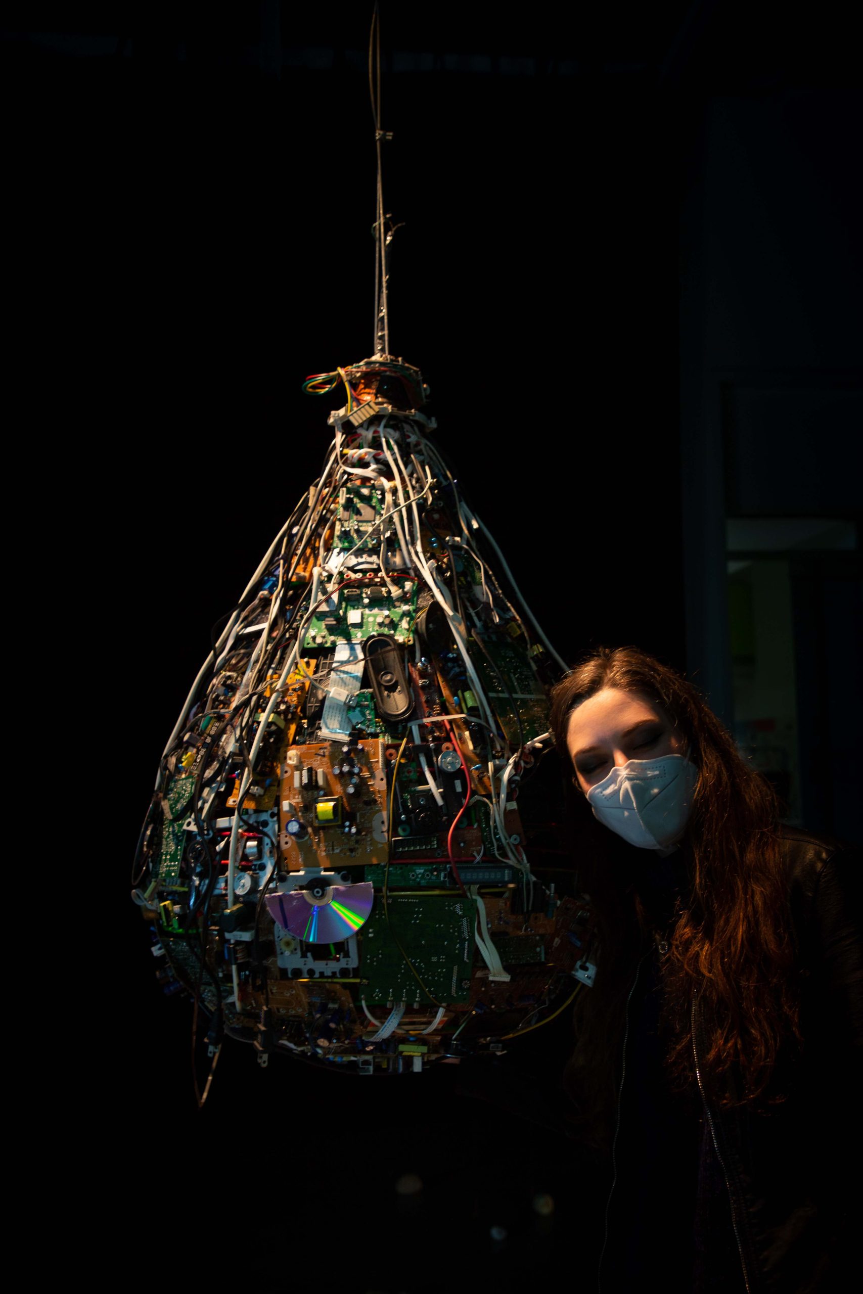 Las esculturas sonoras que integran este proyecto nacen a partir de una exploración de la dominación de la era tecnológica. Se genera un cambio de panorama que es no solo visual sino también sonoro, cambios que generan constantes transiciones y que en primera instancia muestran la adaptabilidad de la naturaleza. Hecho con basura electrónica, el objeto, tanto como el sonido, se inspira en el entorno natural; y aunque tiene una forma similar a un nido de oropéndola, la escala desnaturaliza la figura y transforma el espacio en el que se instala la escultura. El audio, que está hecho a partir de grabaciones de sonidos de agua, es procesado y editado, remitiendo a un paisaje sonoro familiar pero distante, creando un ambiente de una realidad distorsionada, una extrañeza que apela al recuerdo de algo conocido. Una de las razones por la cual quería usar grabaciones de agua como materia prima y no creaciones sonoras netamente artificiales era para dejar ese rastro de algo orgánico dentro de algo aparentemente inorgánico.