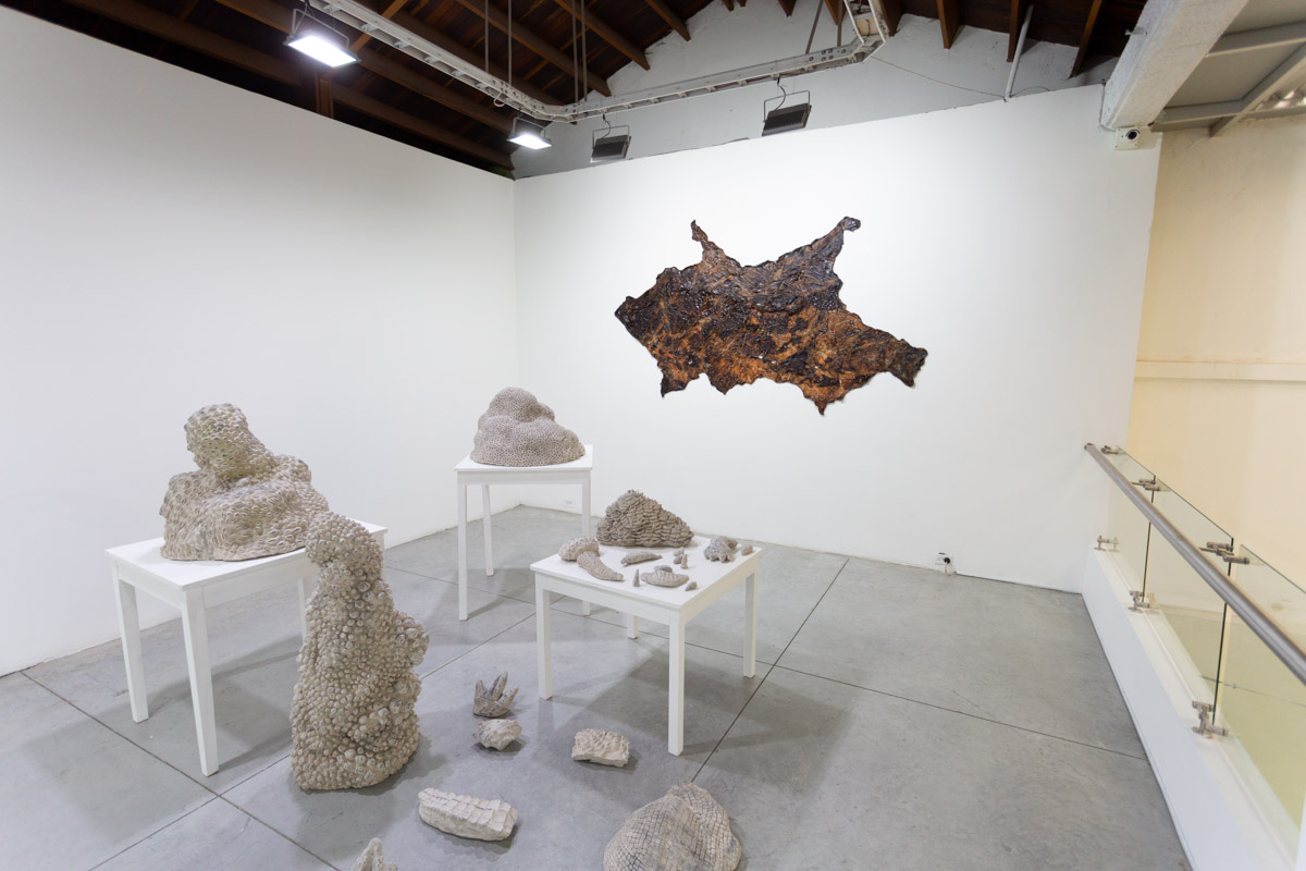 La obra Apeiromorfos presenta algunas reflexiones plásticas sobre lo animal, enfocándose en lo desconocido e indeterminado. Lo indeterminado apela a lo oculto, a lo subterráneo, a lo extraño ignorado por el hombre. Eso otro animal que no nos interpela, que no nos observa, de manera que se vuelve un otro sin rostro. Se refiere a esos universos vivos subrepticios que conviven con el hombre de manera anónima y por tanto se desconocen. La obra Apeiromorfos propone una formas imperfectas que al limitarse y definirse se perfeccionan y adquieren una forma, sugiere por un lado el modo en el que fueron concebidas desde lo procesual y por otro una alegoría al eterno retorno del hombre a la animalidad.