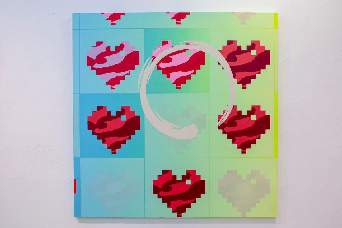 Ctrl+P gira en torno al diálogo y las relaciones inesperadas que se establecen entre los procesos pictóricos ocurridos en el lienzo y los procesos pictóricos ocurridos al operar programas de creación y edición para imagen digital. El diálogo entre el lienzo y la pantalla no es un diálogo confrontativo o competitivo, más bien funciona como una relación simbiótica, en la que organismos de diferentes especies se benefician mutuamente. En la conformación de la serie de pinturas que componen este proyecto, se acude a la fotografía para pasar lo sucedido en lo matérico a lo digital, se acude al software para aplicar efectos, distorsionar la imagen y proponer múltiples bocetos que después pasan de nuevo a lo matérico y a veces de nuevo a lo digital; es un proceso mutable y maleable que al final propone un sólo resultado estático: el objeto-pintura. Cuando se activa este comando en el computador —Ctrl+P, el comando para imprimir—, se está pasando de lo mutable, dinámico y fluyente de lo digital, al plano estático de la imagen impresa; en este caso Ctrl+P no sólo se refiere al control print, también se propone como control paint o control P de pintura y también como control pentimento.