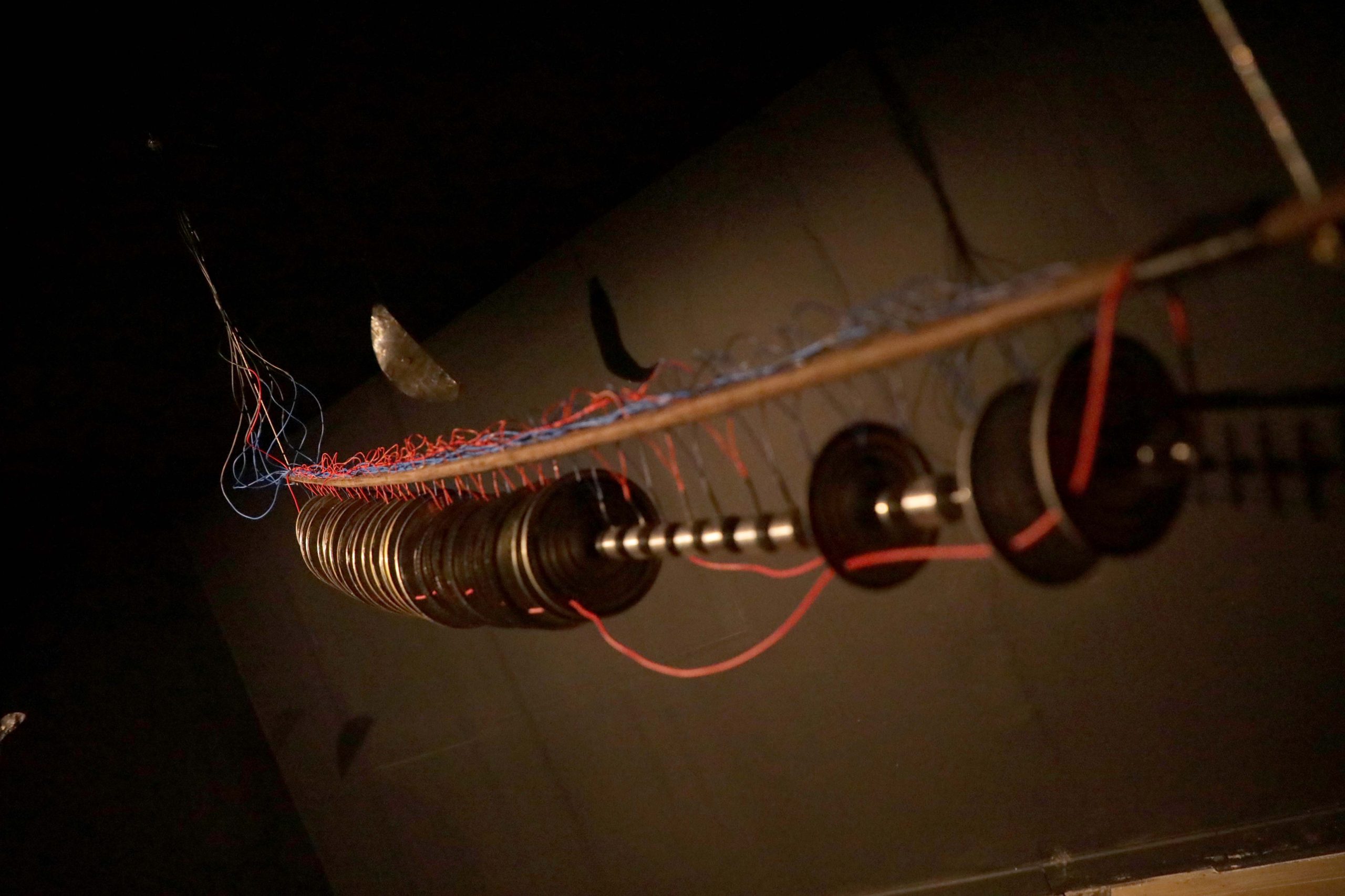 La obra permite a los humanos sumergirse en el mundo perceptual de estos peces y ser testigos de la interacción entre una anguila eléctrica y un cardumen de peces eléctricos débiles, gracias a un ejercicio de transducción de señales eléctricas a sonido.