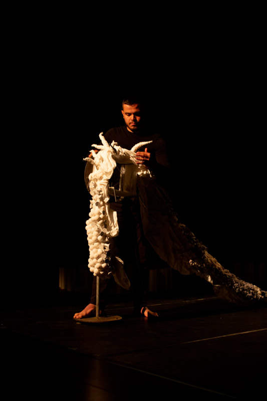 En el tercer escenario se abre un espacio a la presentación del gesto y el performance a través de un dispositivo “dispuesto”, mecanismo en el que se desarrollan determinadas acciones integradas por diferentes medios audiovisuales como proyección de video, sonido e instalación de objetos. De esta manera el dispositivo ofrece un conjunto de objetos agenciados y articulados en el espacio y tiempo. En este contexto, el performance privilegia nuevas relaciones con el público, desde la interacción, es decir por la acción de afectar y ser afectado.